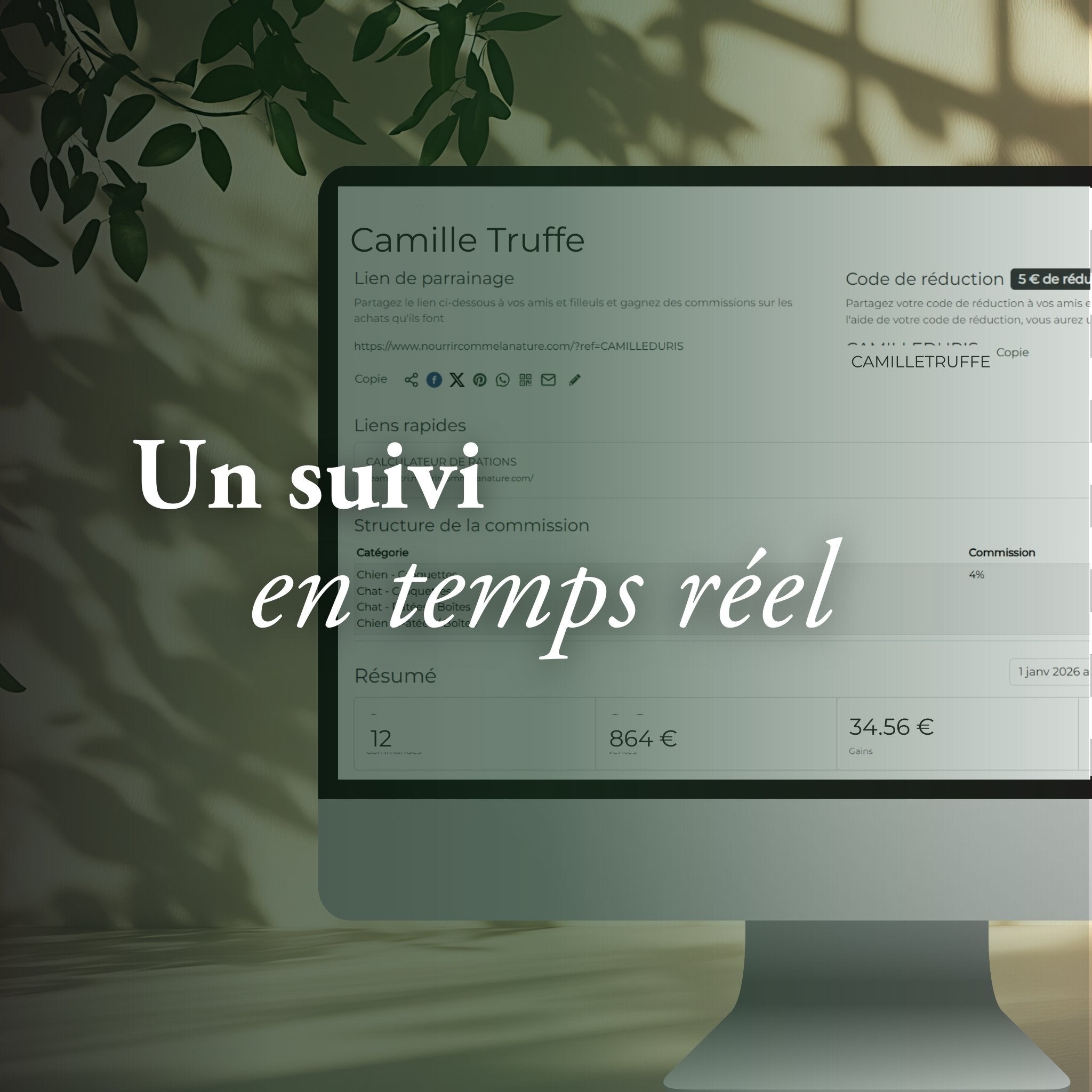 Dès qu’un adoptant utilise votre code lors de sa première commande, il est automatiquement affilié à votre compte.